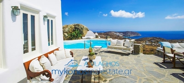 Mykonos, Villa For Sale, 550 sq.m., In Plot 5500 sq.m., Property Status: Very Good, Floor: Ground floor, 3 Level(s), 6 Bedrooms (6 Master), 2 Kitchen(s), 6 Bathroom(s), 1 WC, Heating: Autonomous - Fan Coil, View: Unlimited, Building Year: 2002, Energy Certificate: B+, 4 parking(s), Floor type: Marble + Tiles, Type of doors: Wooden, Features: Security door, Fireplace, Satellite Receiver, Internet Line, Electric Appliances, Internal Staircase, Double Glazed Windows, Window Screens, Balconies, BBQ, Pets Allowed, No shared expenses, For Investment, Luxury, Mansion, Airy, Bright, AirConditioning, Swimming pool, Back yard (Garden), Suitable for Commercial Use, Distance from: Airport (m): 2000, Seaside (m): 2000, City (m): 5000, Price: 3.200.000€. Mykonosrealestate.gr, Tel: 2289028304, email: info@mykonosrealestate.gr