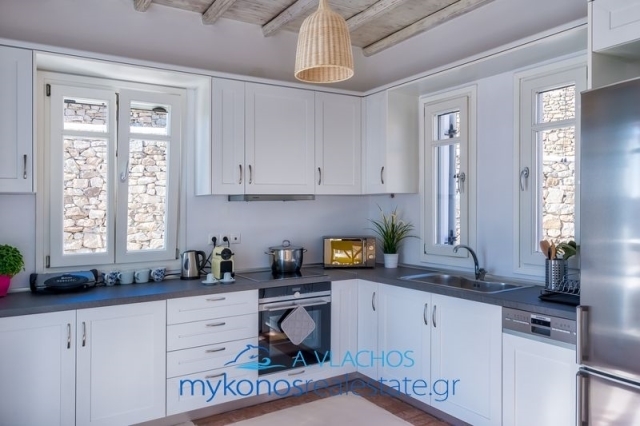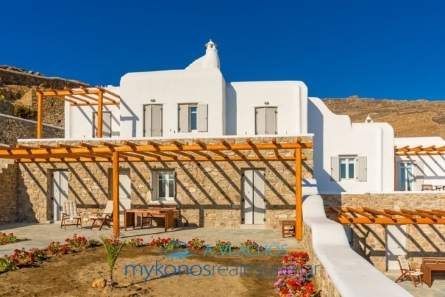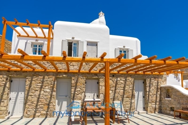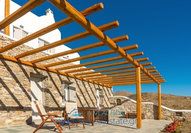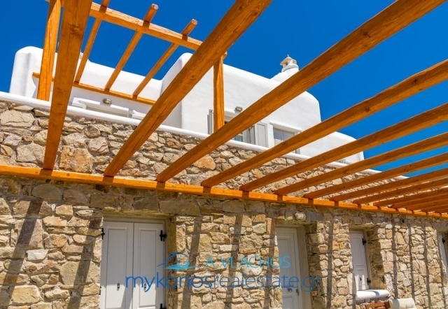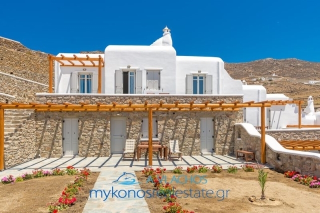 Mykonos, Ftelias, Maisonette For Sale, 140 sq.m., In Plot 400 sq.m., Property Status: Very Good, Floor: Ground floor, 2 Level(s), 3 Bedrooms (3 Master), 2 Kitchen(s), 3 Bathroom(s), 1 WC, Heating: Personal - Electricity, View: Sea view, Building Year: 2006, Energy Certificate: B, 3 parking(s), Floor type: Tiles, Type of doors: Wooden, Features: Security door, Security alarm, Fireplace, Satellite Receiver, Cable TV, Internet Line, Internal Staircase, Double Glazed Windows, Window Screens, Balconies, BBQ, Pets Allowed, No shared expenses, For Investment, Luxury, Airy, Bright, AirConditioning, Solar water system, Boiler, Swimming pool, Back yard (Garden), Renovated, Holiday Home, Suitable for Commercial Use, Distance from: Airport (m): 3000, Seaside (m): 150, City (m): 3500, Price: 800.000€. Mykonosrealestate.gr, Tel: 2289028304, email: info@mykonosrealestate.gr