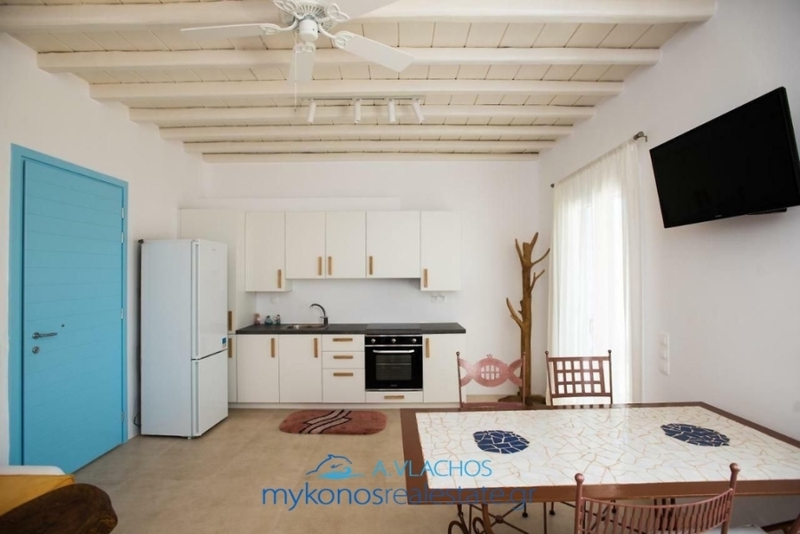 Mykonos, Agios Sostis, Maisonette For Sale, 133 sq.m., In Plot 650 sq.m., Property Status: Very Good, Floor: Ground floor, 3 Level(s), 4 Bedrooms 2 Kitchen(s), 3 Bathroom(s), 1 WC, Heating: Personal - Thermal Accumulator, View: Sea view, Building Year: 2000, Energy Certificate: Under publication, 3 parking(s), Floor type: Tiles, Type of doors: Synthetic, Features: Security door, Cable TV, Internet Line, Electric Appliances, Internal Staircase, Double Glazed Windows, Window Screens, Balconies, Pets Allowed, For Investment, Airy, Bright, AirConditioning, Back yard (Garden), Renovated, Holiday Home, Suitable for Commercial Use, Distance from: Airport (m): 11000, Seaside (m): 500, City (m): 8000, Price: 680.000€. Mykonosrealestate.gr, Tel: 2289028304, email: info@mykonosrealestate.gr
