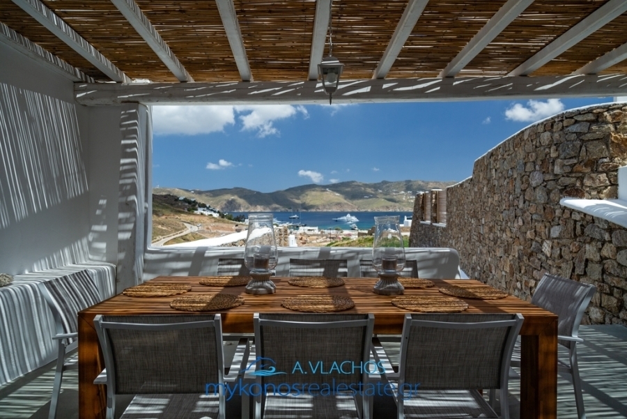 Mykonos, Panormos, Maisonette For Sale, 202 sq.m., In Plot 400 sq.m., Property Status: Very Good, Floor: Ground floor, 3 Level(s), 4 Bedrooms (4 Master), 1 Kitchen(s), 4 Bathroom(s), 1 WC, Heating: Personal - Electricity, View: Sea view, Building Year: 2000, Energy Certificate: B+, 3 parking(s), Floor type: Tiles, Type of doors: Wooden, Features: Security door, Security alarm, Satellite Receiver, Cable TV, Internet Line, Electric Appliances, Internal Staircase, Double Glazed Windows, Window Screens, Balconies, BBQ, Pets Allowed, Water Bore, No shared expenses, For Investment, Stonehouse, Luxury, Airy, Bright, AirConditioning, Solar water system, Boiler, Swimming pool, Back yard (Garden), Painted, Renovated, Holiday Home, Distance from: Airport (m): 9000, Seaside (m): 500, City (m): 8000, Price: 1.500.000€. Mykonosrealestate.gr, Tel: 2289028304, email: info@mykonosrealestate.gr
