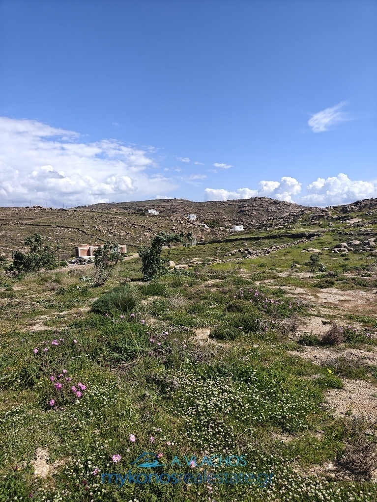 Mykonos, Super Paradise, Agricultural Land For Sale, Out of City plans, 5.500 sq.m., Frontage (m): 30, Features: For development, For Investment, Roadside, Amphitheatrical, For tourist use, For Homes development, Distance from: Airport (m): 2500, Seaside (m): 1500, City (m): 4500, Price: 420.000€. Mykonosrealestate.gr, Tel: 2289028304, email: info@mykonosrealestate.gr
